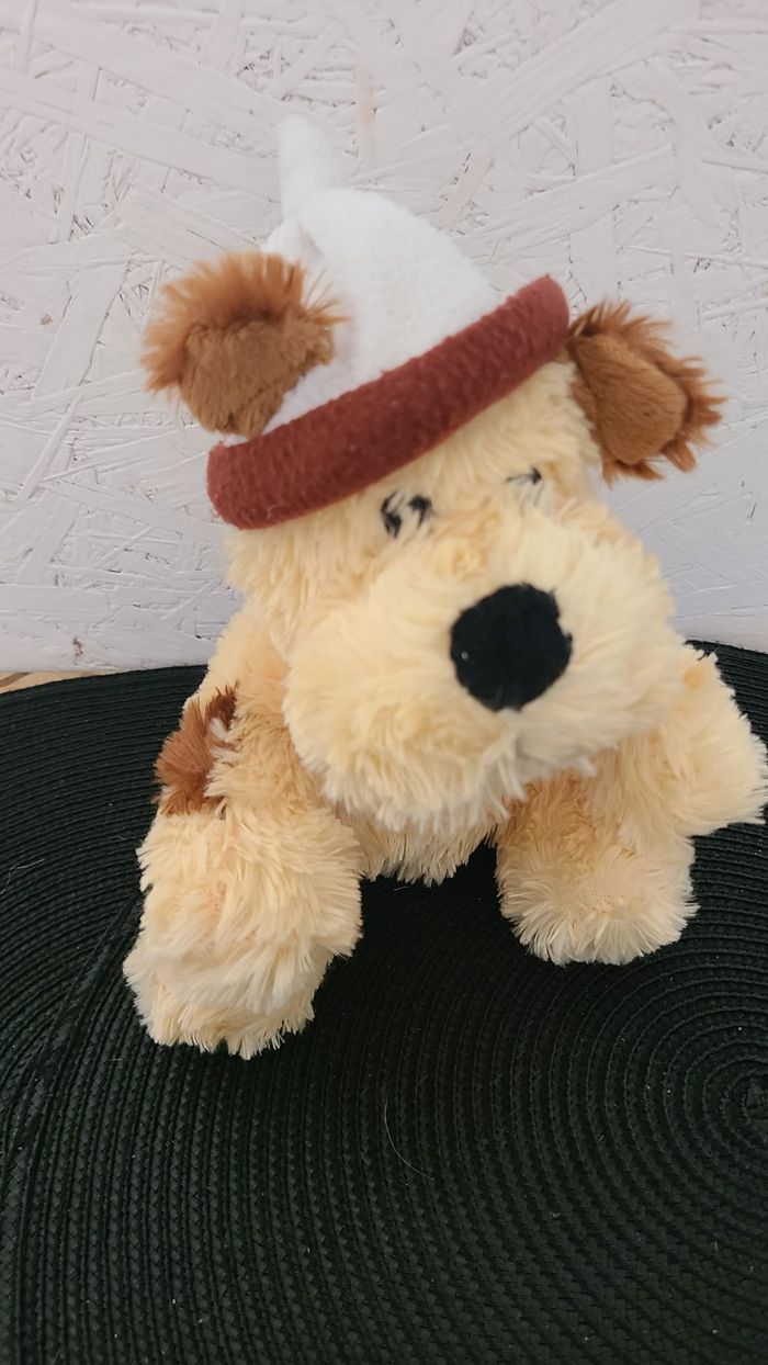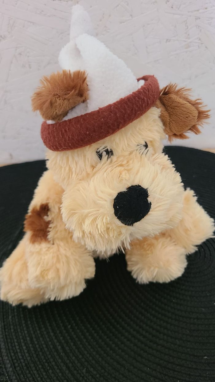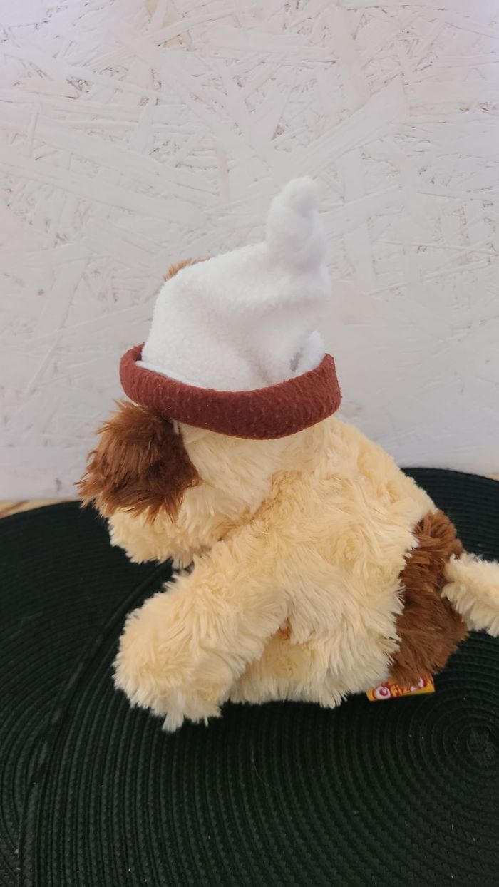 doudou chien assis beige tache marron bonnet fizzy - photo numéro 1