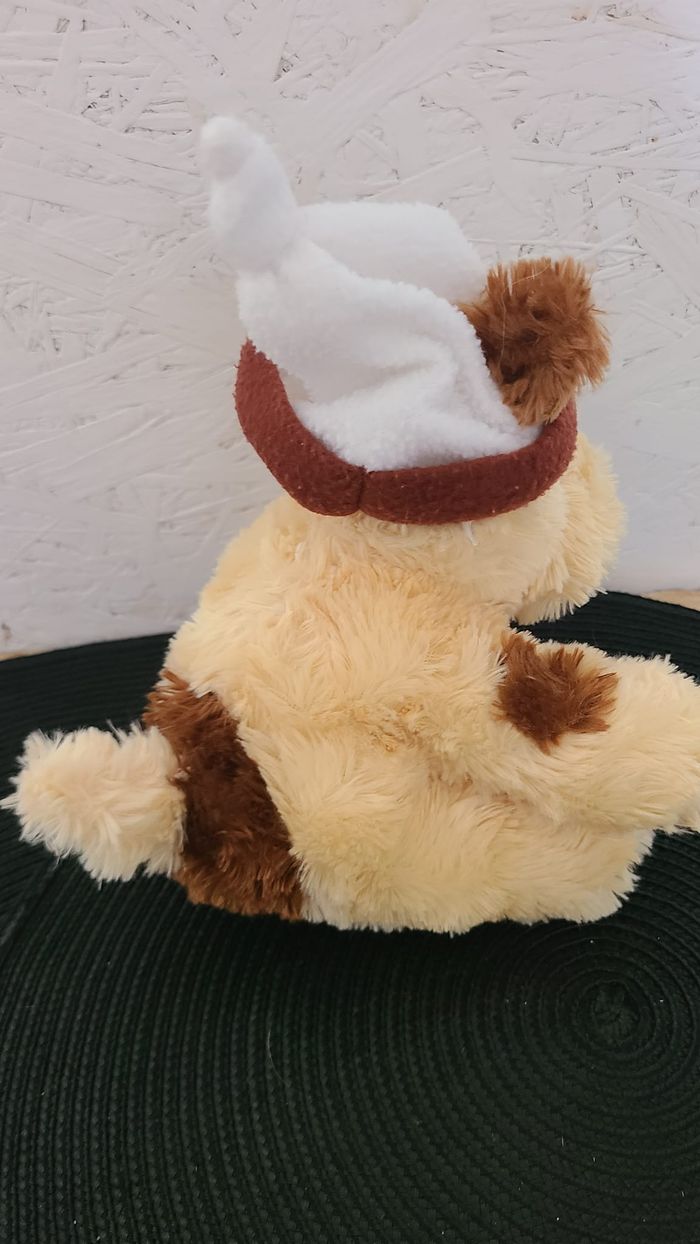 doudou chien assis beige tache marron bonnet fizzy - photo numéro 4