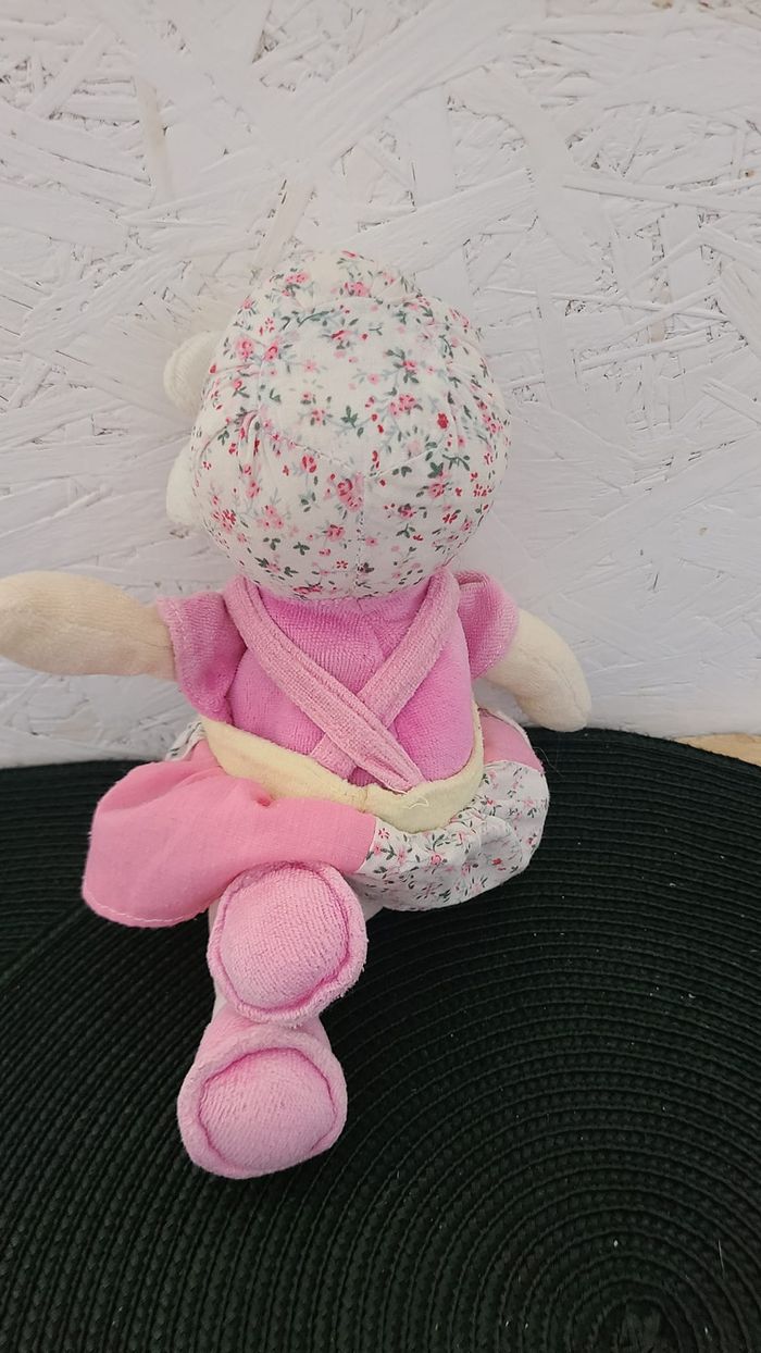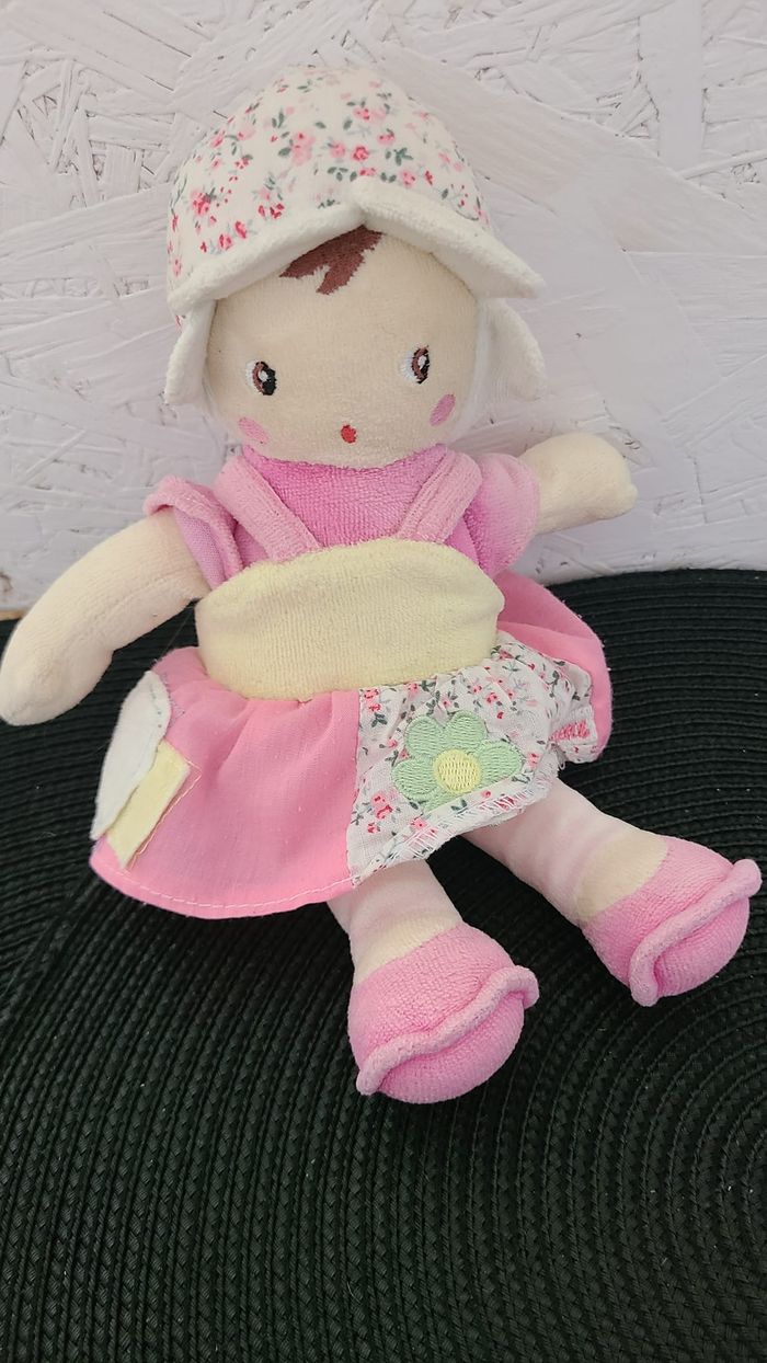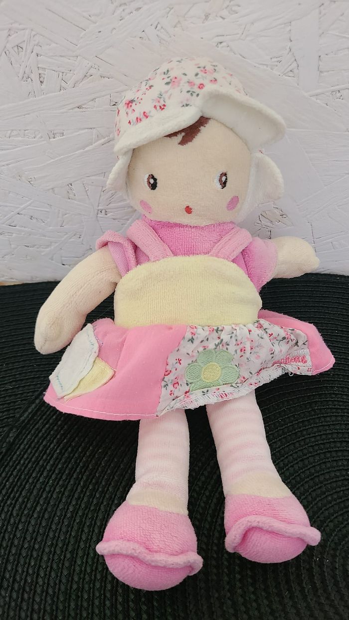 Doudou poupée rose blanc fleurs QUE DU BONHEUR - photo numéro 1