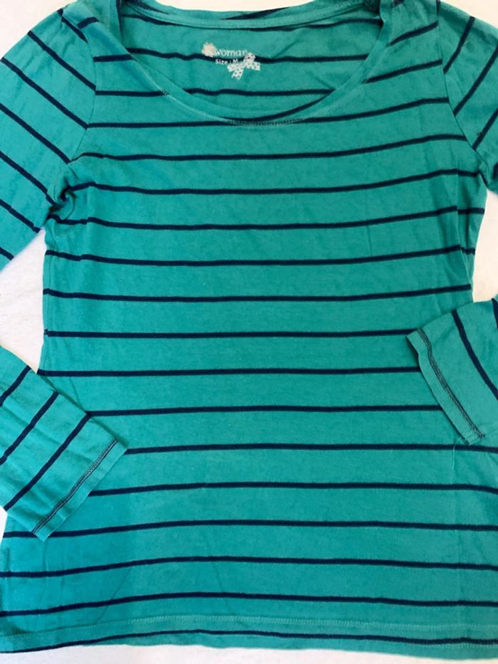 Tee-shirt de la marque kwoman taille 38 composé à 100% coton Le tissu peluche #kwoman #taille38 #rayures