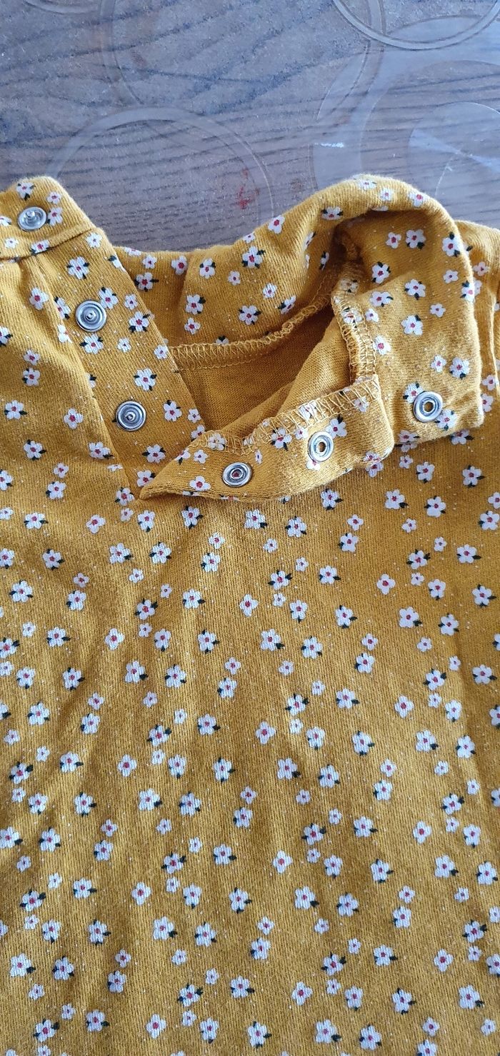 Tee-shirt manches longues 3 pressions dos Bébé 🚼 fille Taille 9 mois Couleur jaune avec dessin fleurs Marque inextenso Maison non fumeur