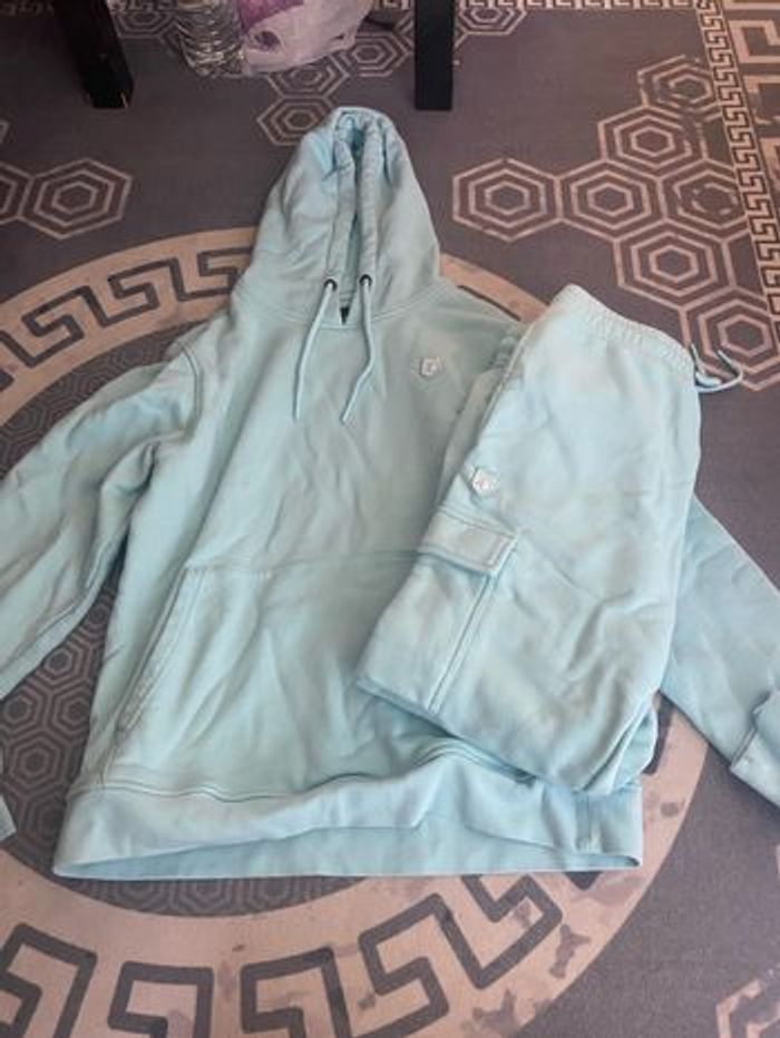 Bonjour je vend mes 3 survet Couleur : BLEU - TURQUOISE - SAUMON portée quelque fois ils sont propre et neuf Le survet TURQUOISE est tacher vite fait o niveau du pull et du pantalon avoir les photos Les 3 survet taille la même PULL:: M PANTALON :: S possible de les vendre séparément