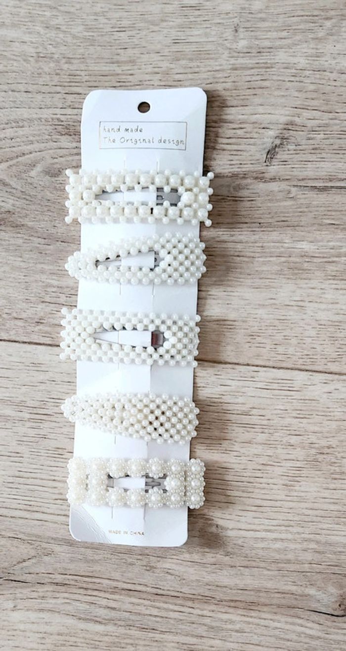 Lot de 5 pinces à  cheveux perles de culture crème - photo numéro 1