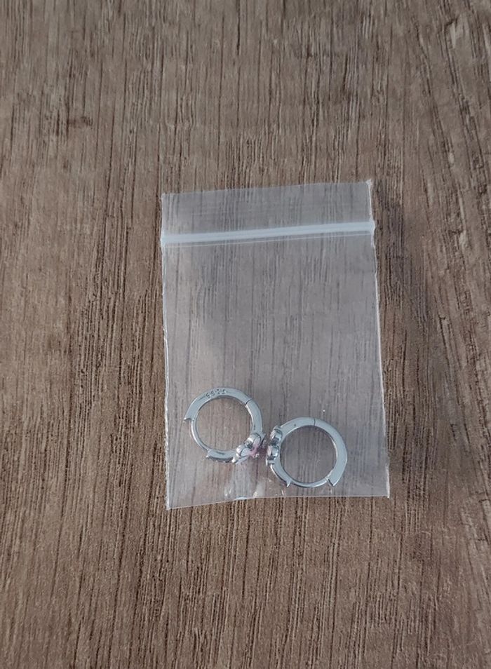 Boucles d'oreilles fille argent 925 fleur rose et strass 🌸 - photo numéro 1