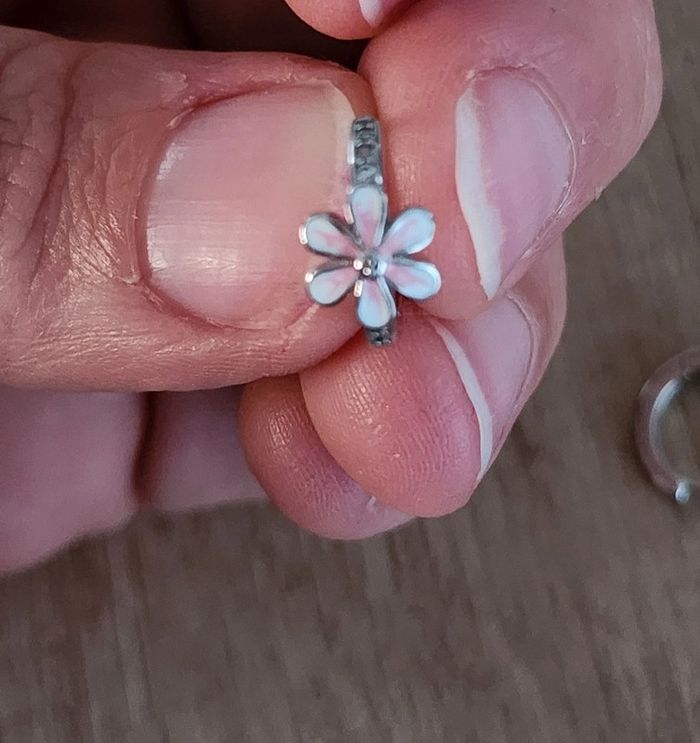 Boucles d'oreilles fille argent 925 fleur rose et strass 🌸 - photo numéro 5