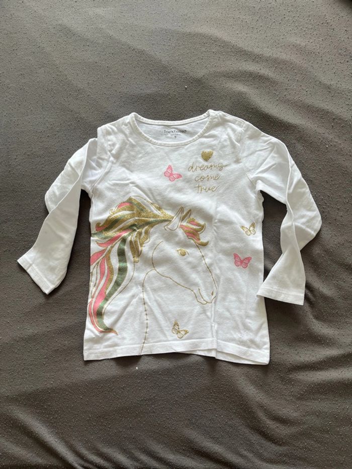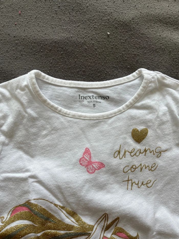 Tshirt ML blanc motif licorne Inextenso Taille 5ans (107-113cm) Très bon état #chaamaloox3_Fille #5ans_chaamaloox3