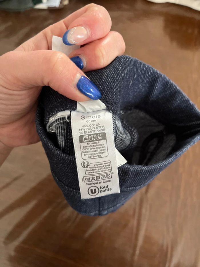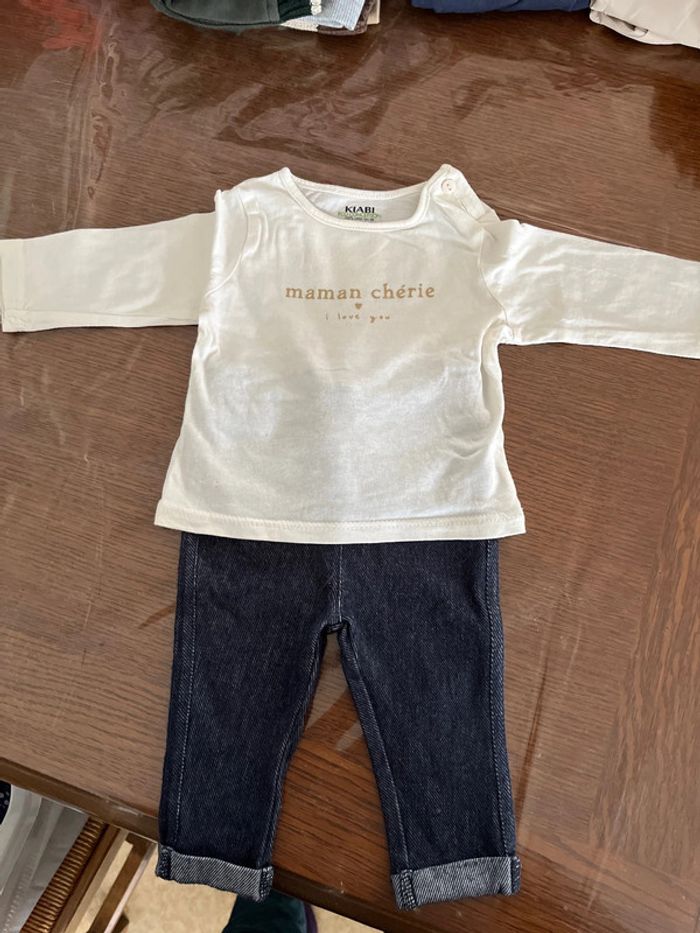Tshirt + pantalon Taille 3mois Très bon état Kiabi. _ 100%coton _ blanc U tout petit. _ 49%coton/46%polyester/5%elasthanne. _ couleur jeans #chaamaloox3_Fille #3mois_chaamaloox3