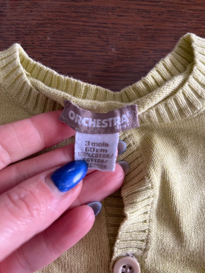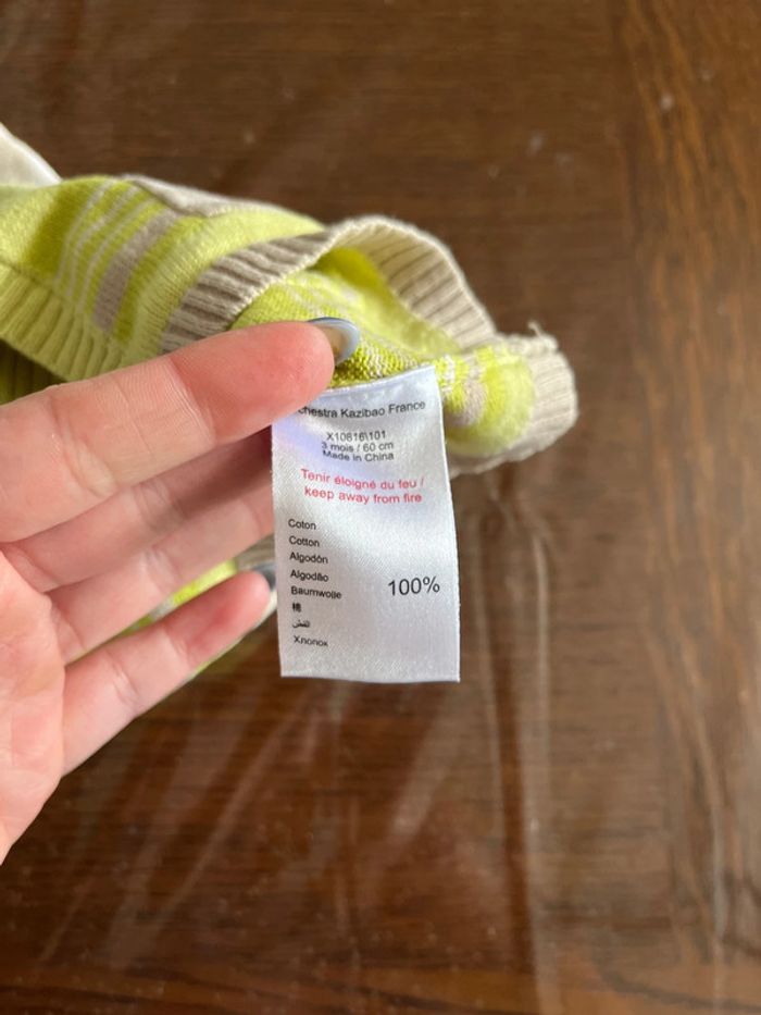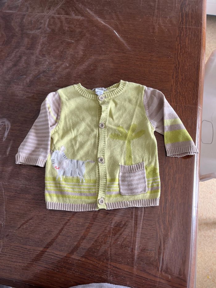 Petit gilet fin Orchestra Taille 3mois Très bon état 100%coton Vert anis/marron/beige motif zèbre #chaamaloox3_Mixte #3mois_chaamaloox3
