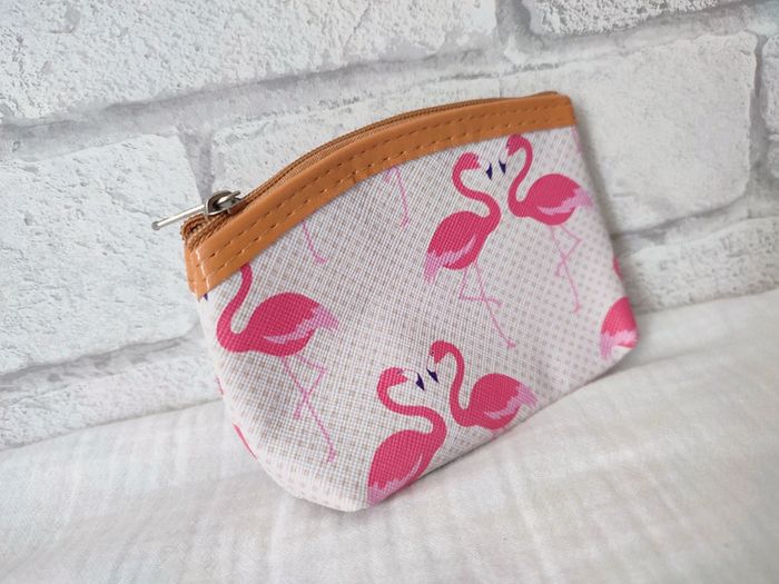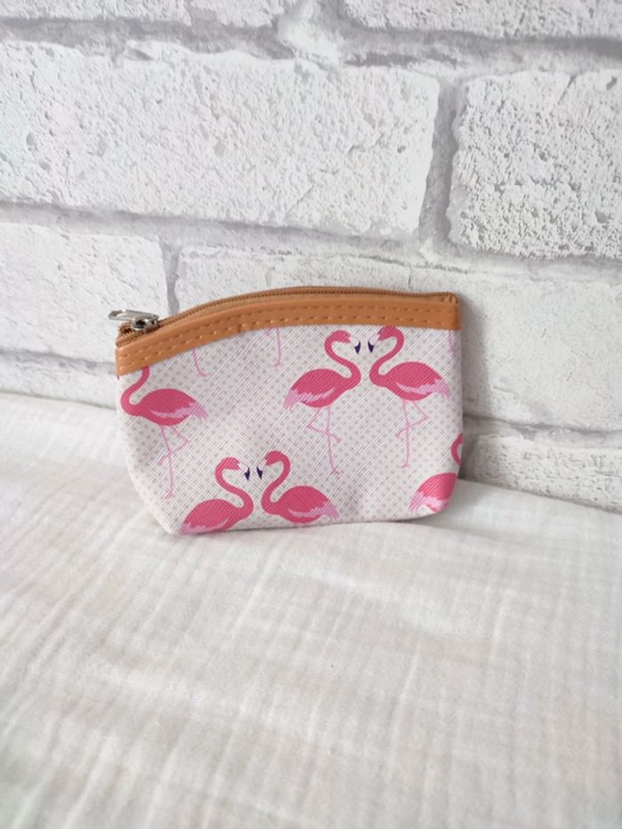 Petit porte monnaie ,créme imprimé flamand rose remise activée sur les lots
