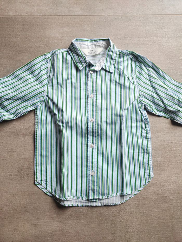 Très peu portée. En parfait état. Taille 4/5 ans de chez H&M. 100% coton #hmgarcon #hmgarcon5ans #chemiserayéegarcon5ans