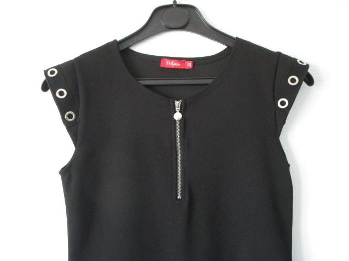 Robe noire Tissaia taille 12 ans Manches courtes Zip sur le devant et œillets sur les manches 96% polyester/4% élasthanne Fabriquée en France #mamanbrade59fille12ans