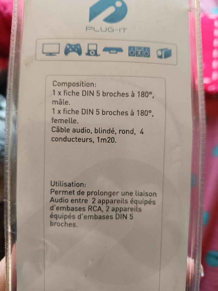 DIN 5 1.2 m permet de prolonger une liaison audio entre 2 appareils