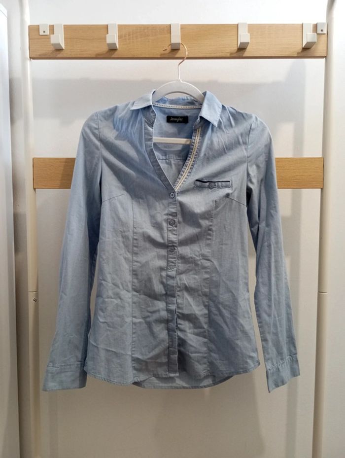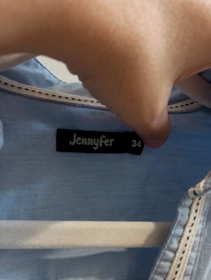 Taille 34 Marque jennyfer Belle coupe cintrée Jolie fausse poche poche Détails aux coudes (léger défaut du au repassage, peu visible voir la photo) Ouverte devant, les boutons ne vont pas jusqu'en haut Ma préférée, dommage que je ne rentre plus dedans