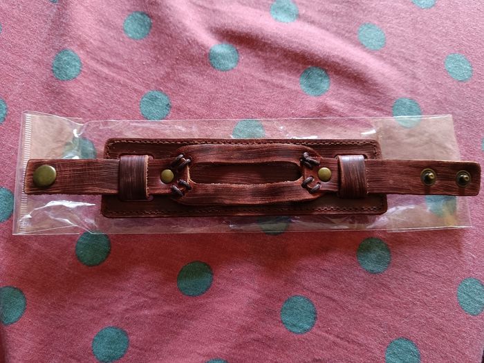 Bracelet homme unisexe en cuir marron réglable avec 2 boutons Longueur 24 cm et largeur 5,5 cm Jamais porté