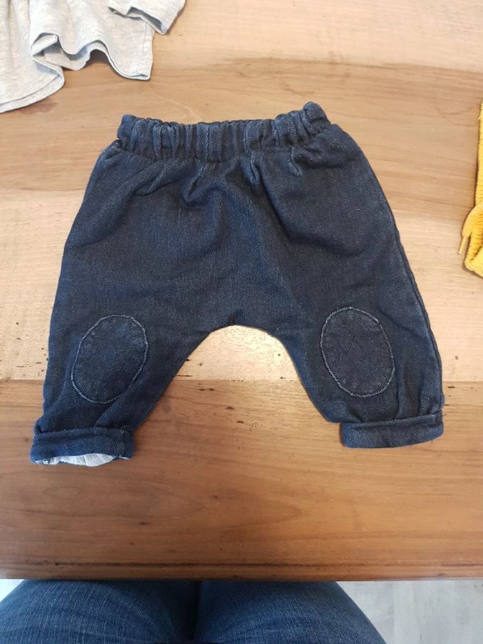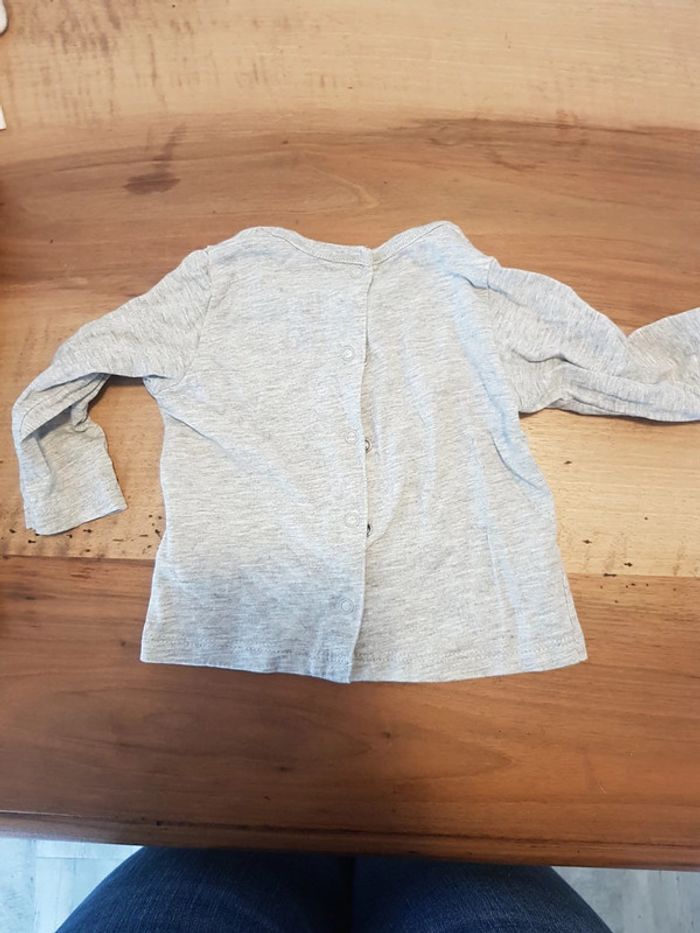 Ensemble jean et t-shirt Vertbaudet, t-shirt manches longues gris avec pressions sur l'arrière. Tres bon état