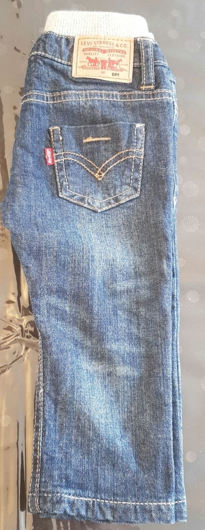 Ce Jean Levi's Strauss de taille 6 mois et rembourré à l'intérieur très bien pour cette hiver . Il n'a jamais été porté sauf pour eseage Excellent état pas de trous aucune tâches occasion à saisire