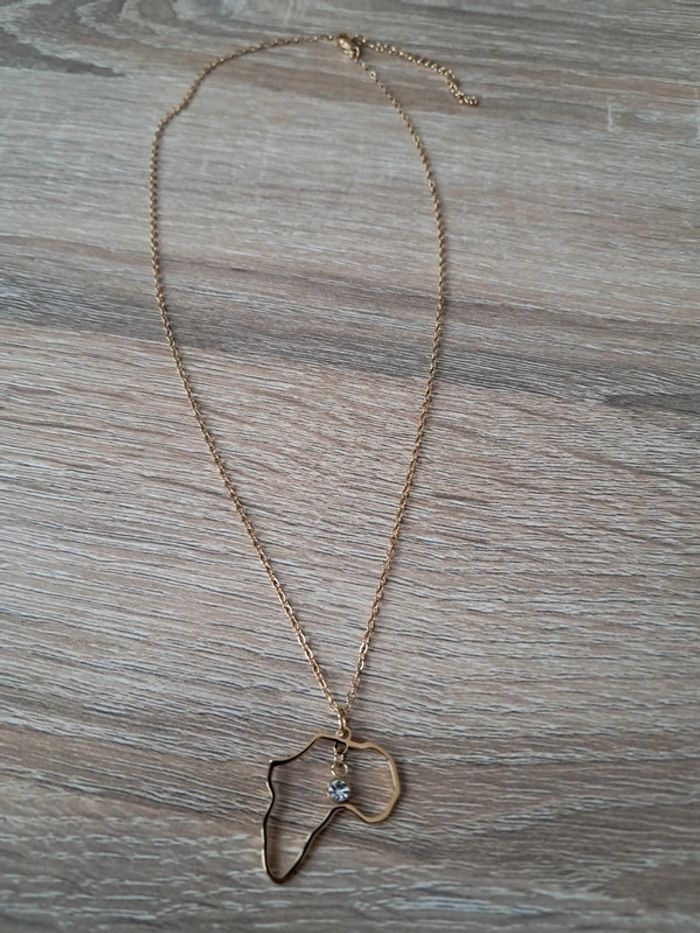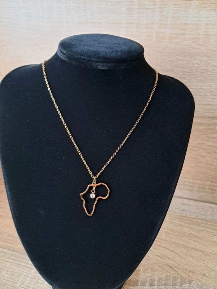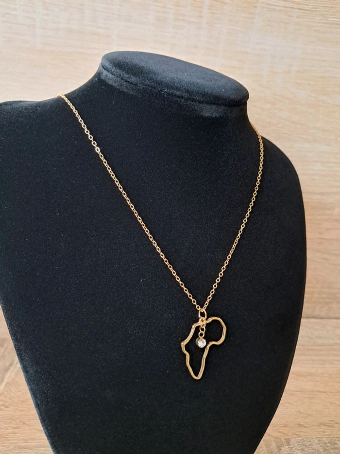 Collier en acier inoxydable doré avec le continent d'afrique Ajustable 45cm+5 Offre petit pochon Envoi rapide et soigné