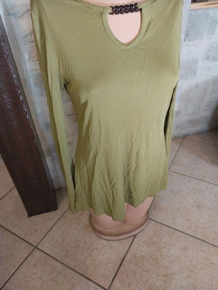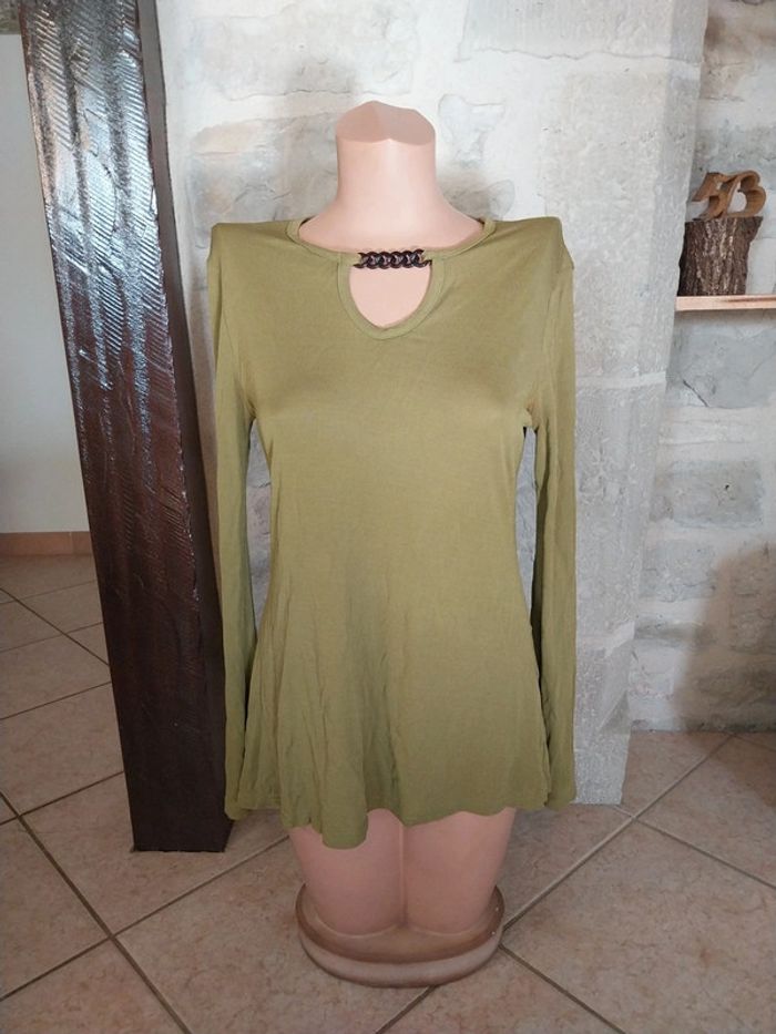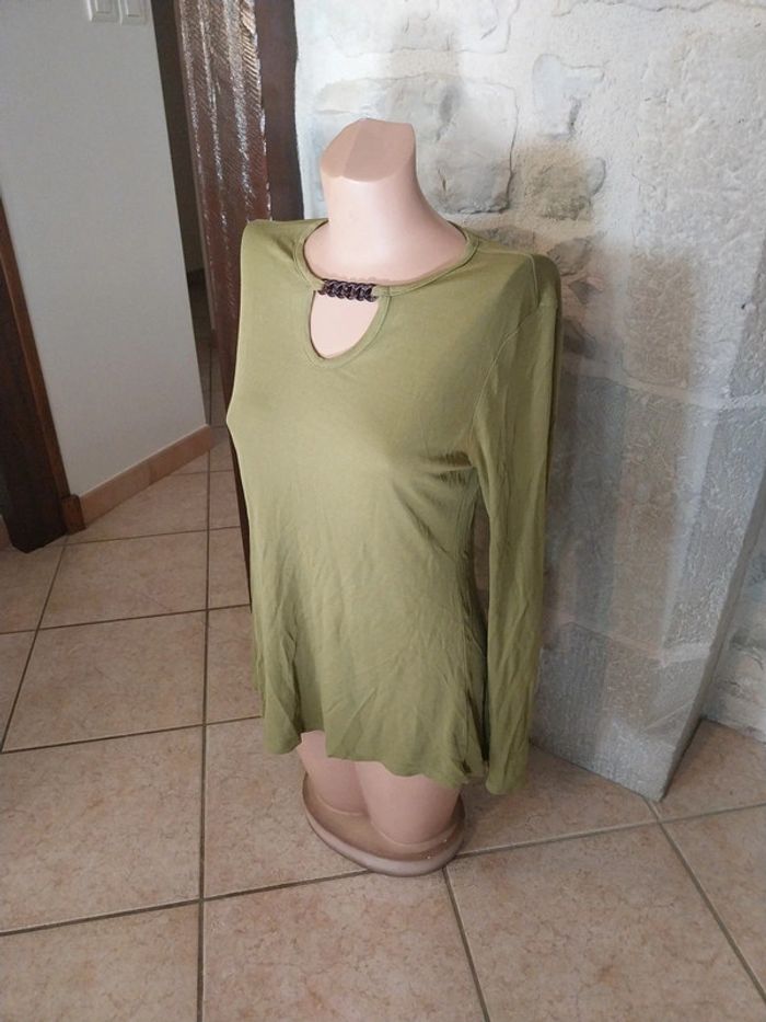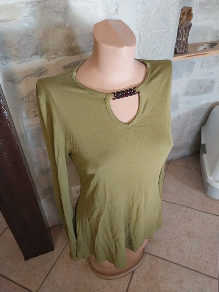 Nous mettons en vente ce magnifique Tee-shirt femme. Indiqué sur étiquette : TUNIQUE Angela taille unique. Matière très souple et extensible. Hauteur 65cm Épaules à Épaules 45cm Longueur manche 64cm