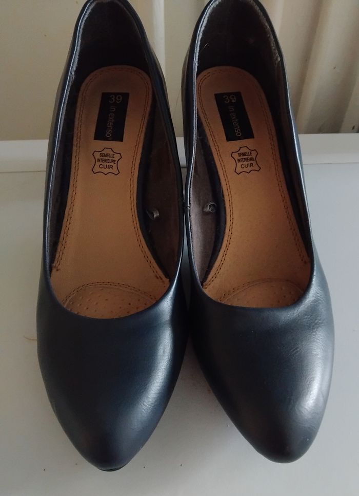 Taille 39 Semelle interieur cuir Bleu marine Trait blanc sur le coter voir photo