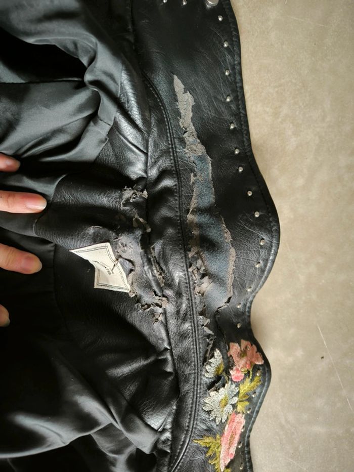 Perfecto en simili superbe , taille bien, super coup, seul défaut le col s'est abîmé et je ne sais me servir de mes 10 doigts pour le réparer ou mettre une moumoute.... Défaut sur ce perfecto :-/ Donc pour les couturières douées petit prix
