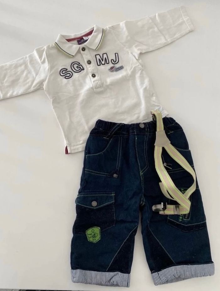 Ensemble 12 mois Pantalon avec bretelle orchestra T shirt manche longue sergent major Très bon état