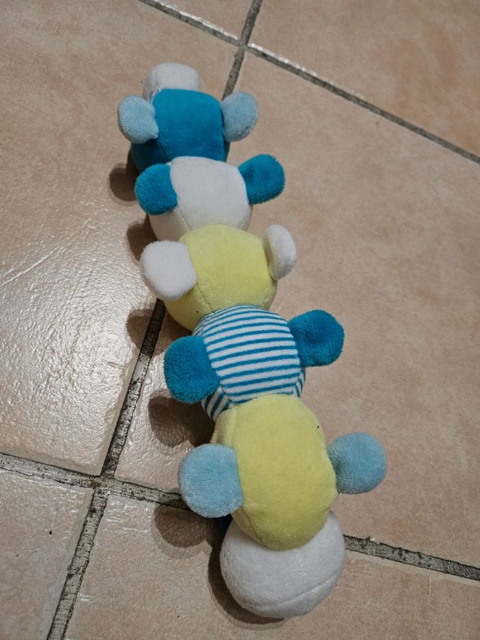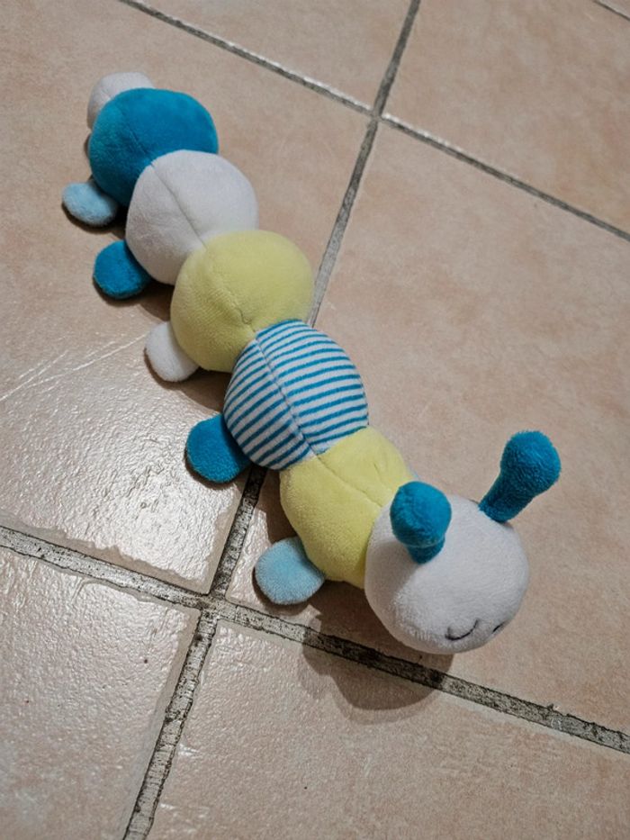 Doudou chenille tout doux et avec des billes (bruit de hochet) à l'intérieur Très bon état Il servait simplement de décoration