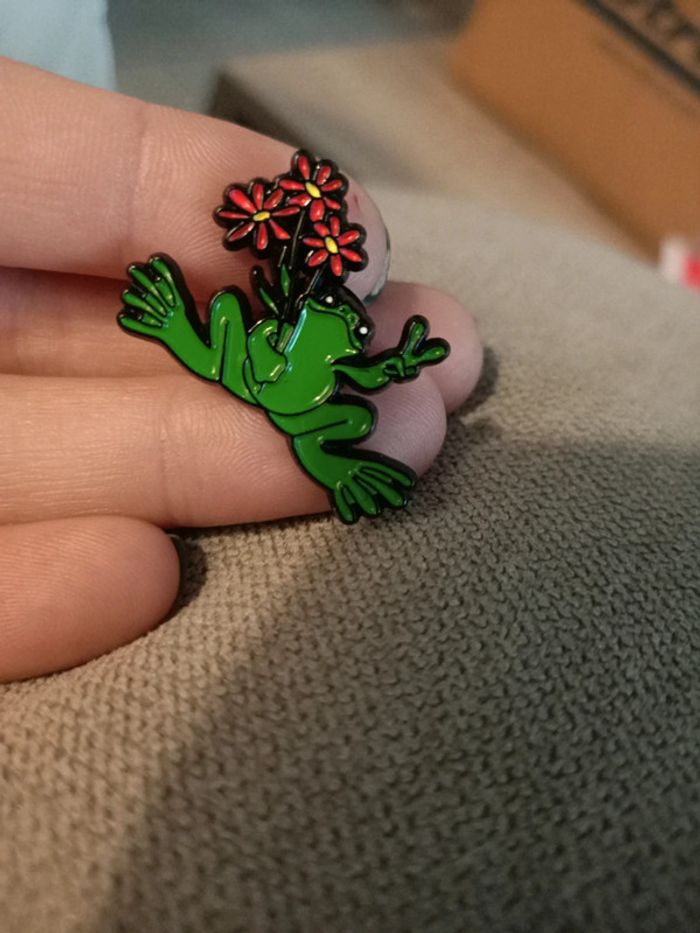 Pins grenouille avec bouquet de fleurs - photo numéro 1