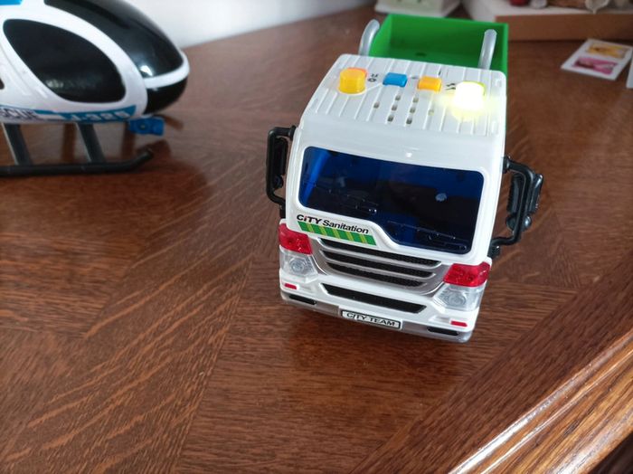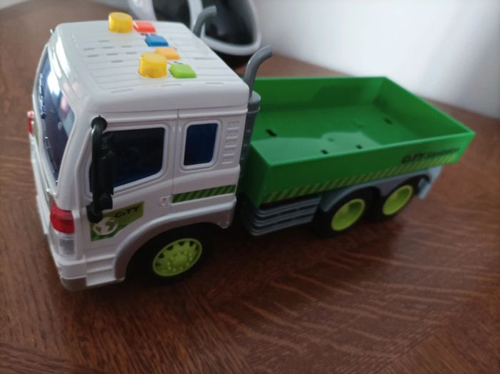 Camion benne sonore et lumineux 4 boutons pour activer le son et la lumière Fonctionne avec les piles qui sont fournies dans le camion