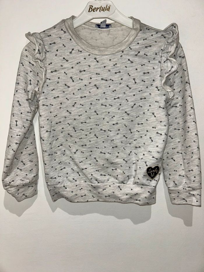 Sweat gris clair motifs cœur bleu marine Taille 6 ans Excellent état