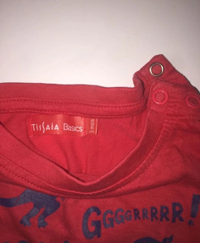 T-shirt rouge motifs dinosaures Taille 3 mois Excellent état