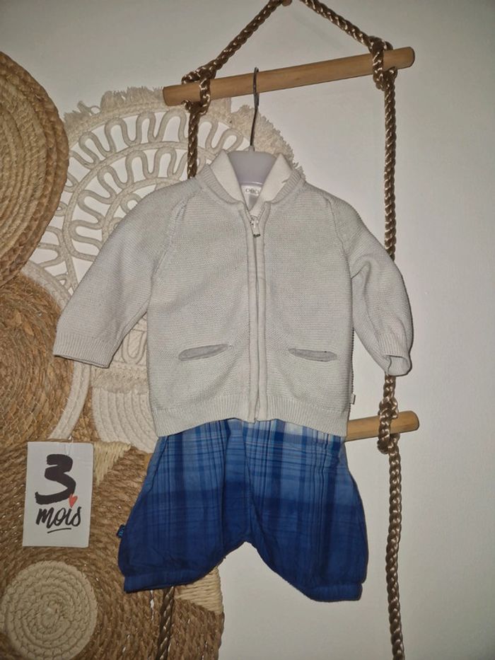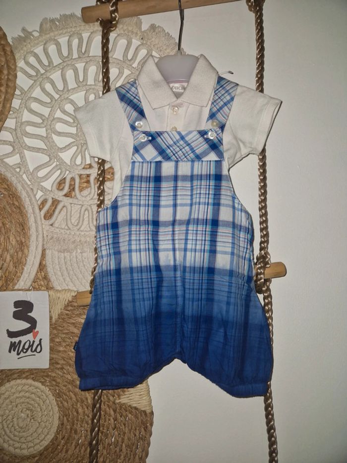 Ensemble 3 pièces 1 gilet et 1 ensemble Salopette short et polo #garçon #obaibi #taille3mois #tresbonetat #tatche62700garçon3mois