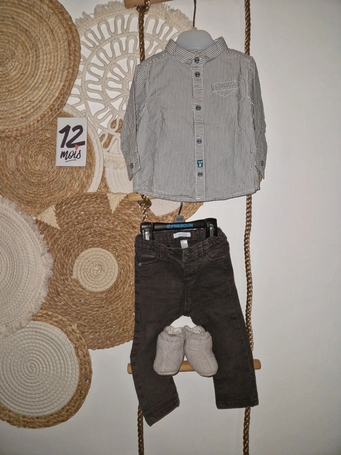 Ensemble chemise, jeans, pantoufle #garçon #obaibi #taille12mois #tresbonetat #tatche62700garçon12mois