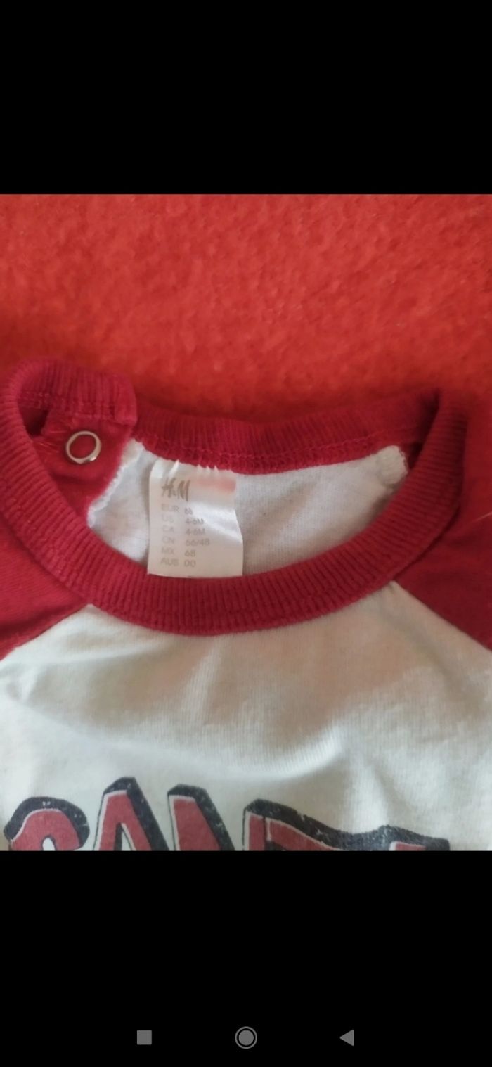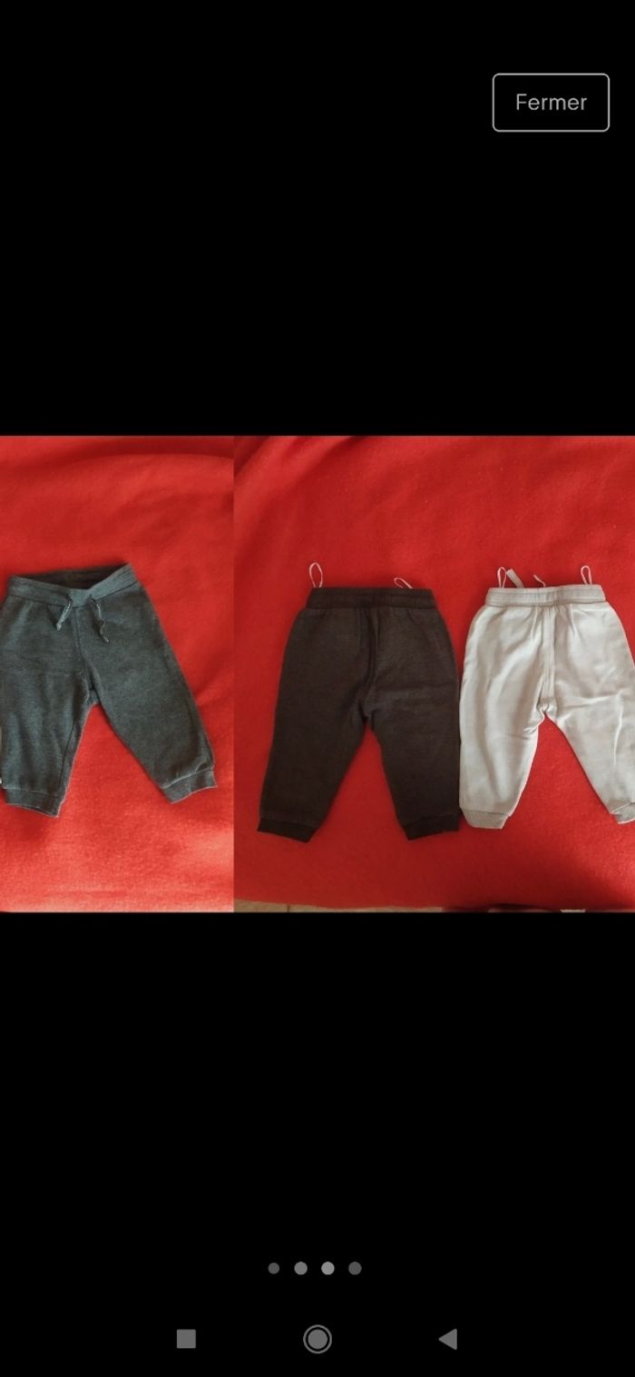 Très bon état. Peu porté. 6 mois. Boutons pressions et fermeture ok. Coton. 1 tee-shirt manches longues 🔴 et écru H&M. 1 pantalon rouge🔴 H&M. 1 pantalon bleu🔵 avec pieds H&M. 3 jogging H&M. 1 marron, 1 écru, 1 gris avec liens. Le lot 5€. Un autre lot 6 mois dans mon dressing. Réductions activées.