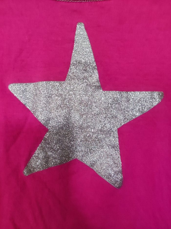 T shirt / sweat / top Marque NKY Taille 4-5 ans Col rond. Manches longues. Coloris uni rose avec imprimé étoile argenté a paillettes. Parfait etat. Sans étiquette matière/ marque et taille. Dimensions a plat Épaule a epaule : 23 cm Aisselle a aisselle 29 cm Longieur 41 cm
