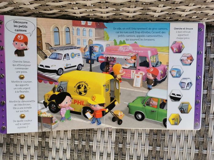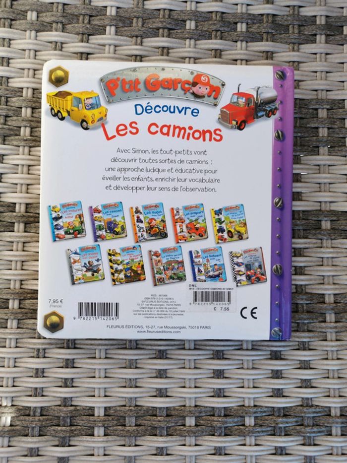 Grand format pour ce livre de la catégorie p'tit garçon On découvre les camion avec Simon Très belles images et jeux à trouvé sur les côtés