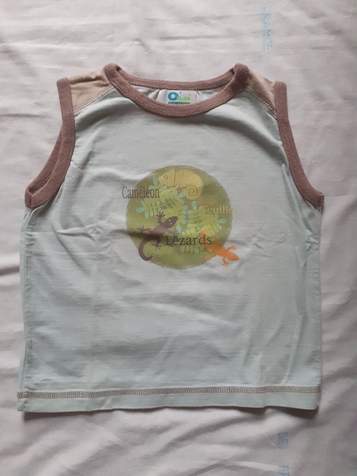 Débardeur bleu ciel motif rond vert et lézards 2 ans