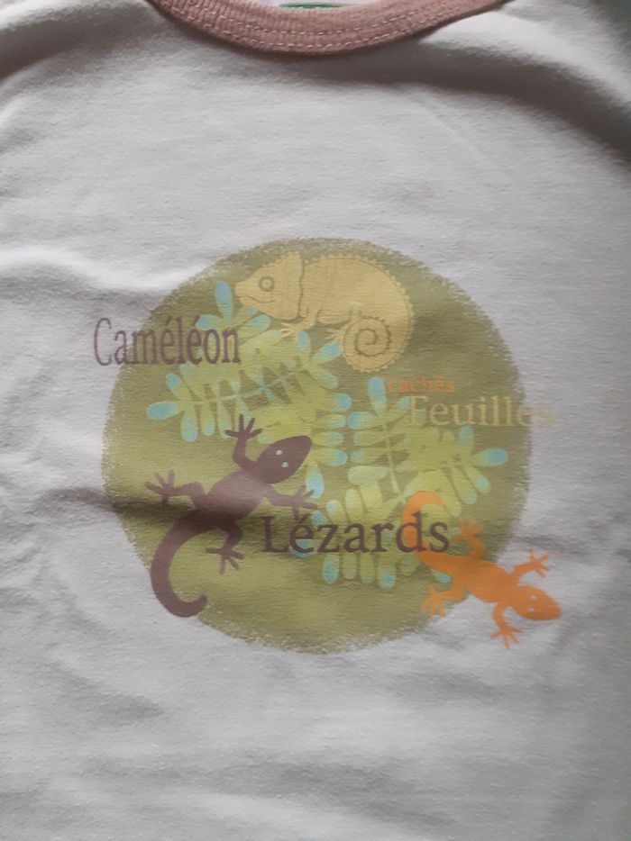 Débardeur bleu ciel motif rond vert et  lézards - photo numéro 2