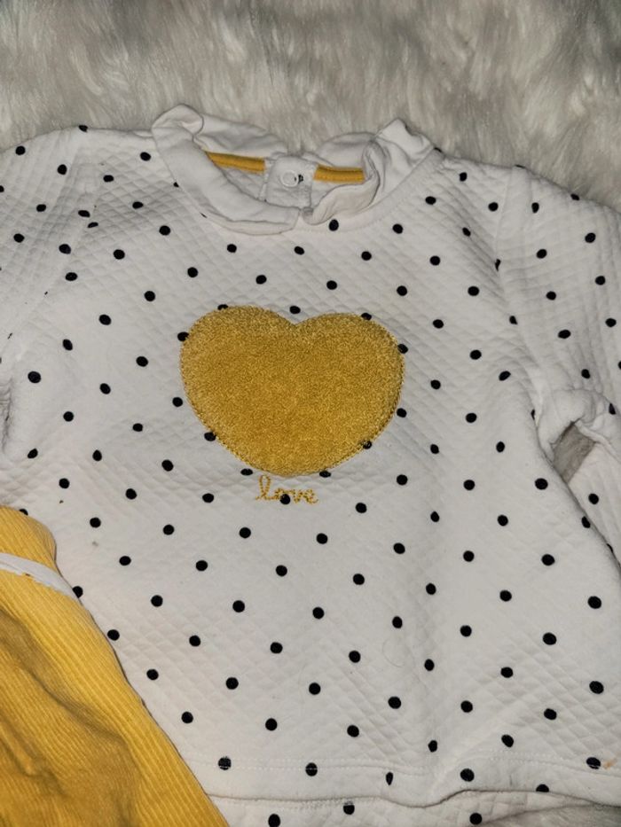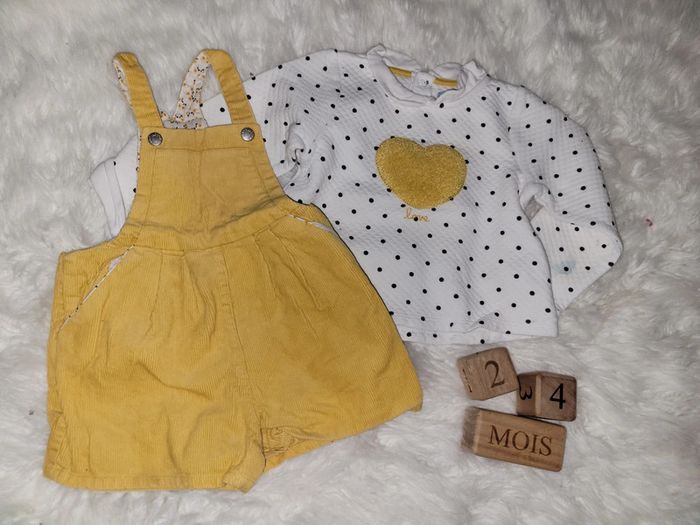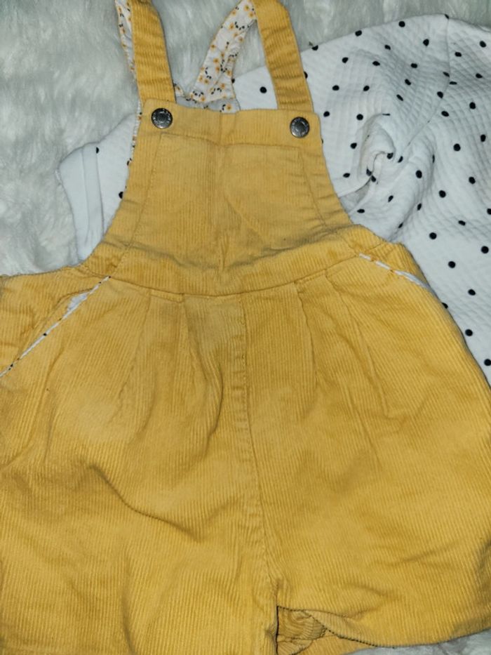 24m. Salopette courte en velours, Sweat avec un cœur brodé. Une tache au dos de la manche. #pomponette2503#24mois