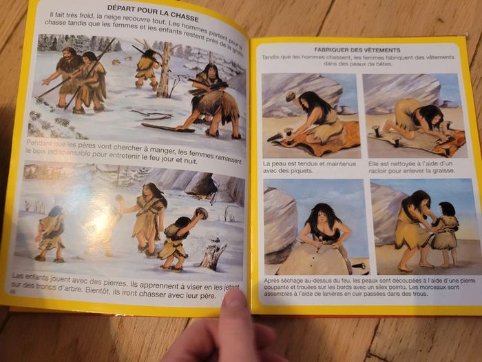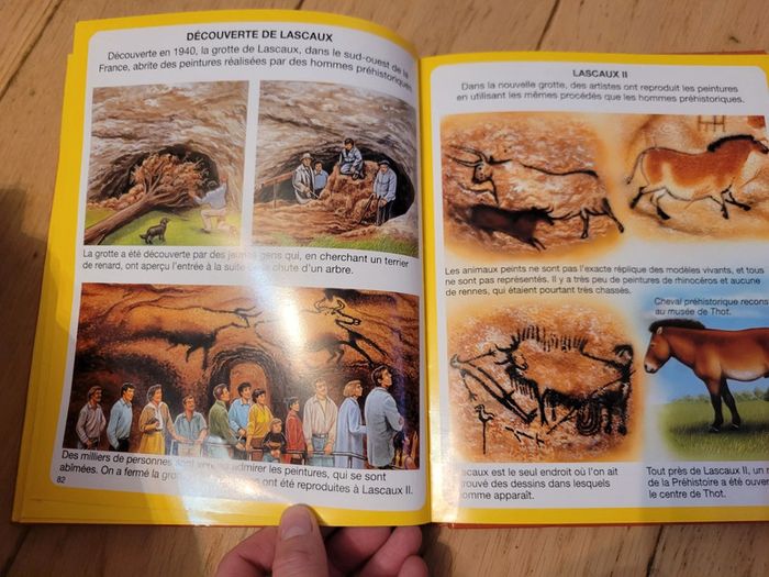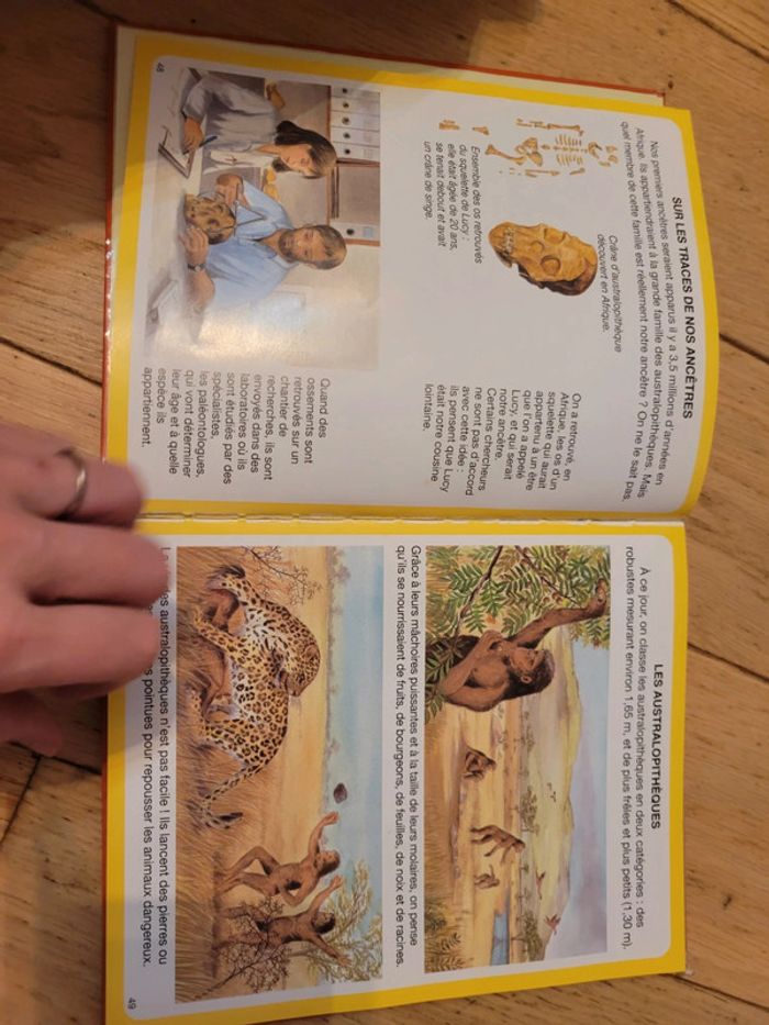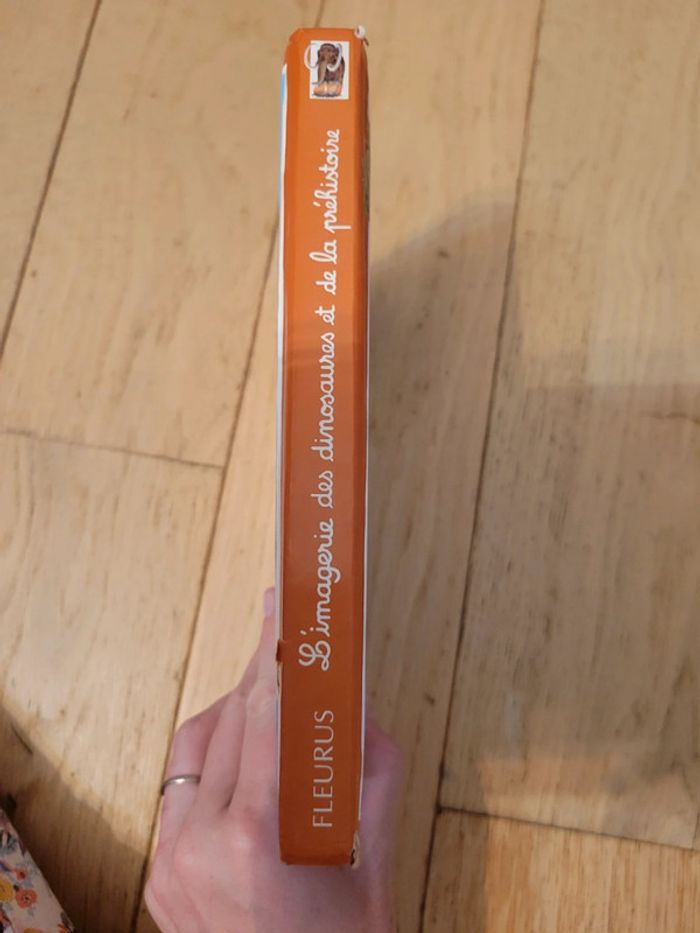 Livre expliquant les dinosaures et la préhistoire en images. Reliure abîmée