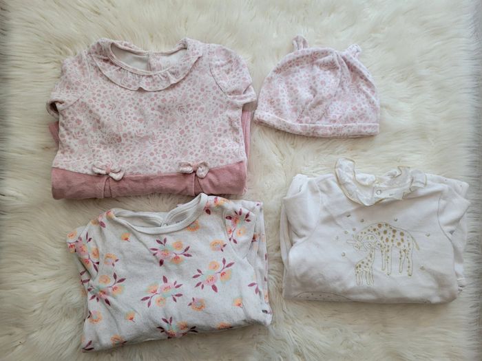Pyjama rose sergent major tbe avec son bonnet neuf , Pyjama fleuri tbe dpam, Et pyjama blanc broderie doré tbe dpam
