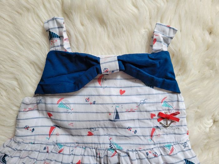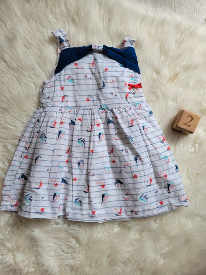 Robe theme marin doublé. Une jolie breloque ancre ⚓️. Taille plutôt un 24mois