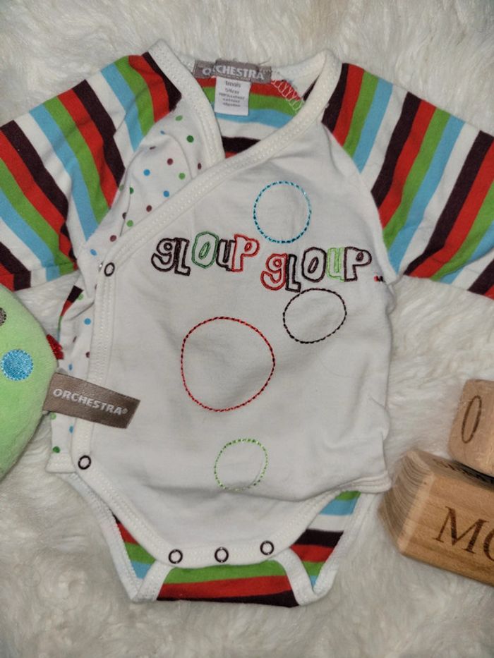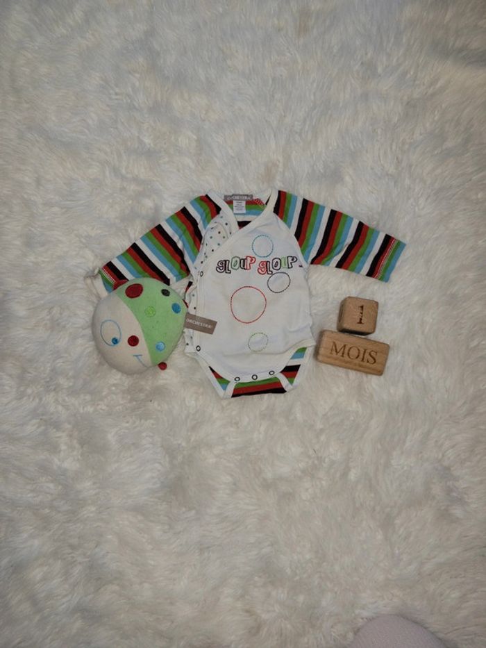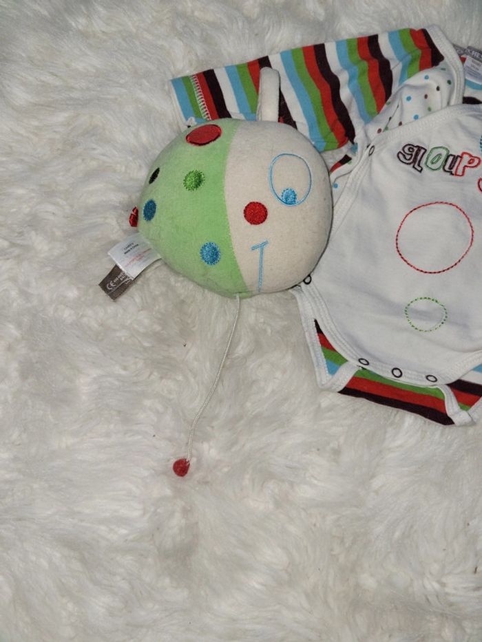 Orchestra Idéal cadeau naissance avec son doudou boîte à musique du même thème. Body ouverture cache coeur