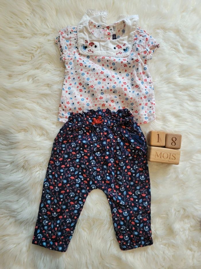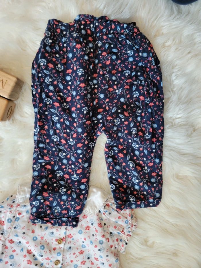 Col marin sur une belle blouse fleuri, Un pantalon léger doublé pour plus de confort. J ai le gilet du même thème en 24m. #pomponette2503#18moisfille