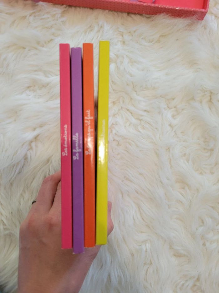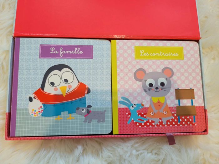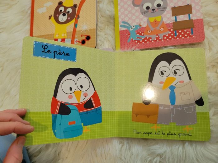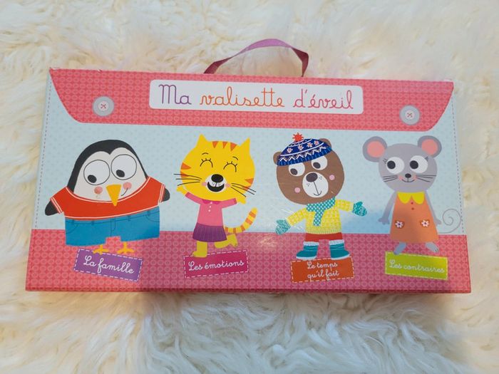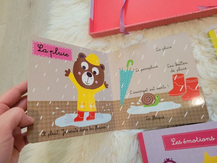 4 livres neufs, ma fille ne s y est jamais interessee: la famille, les émotions, le temps qu il fait et les contraires. La valisette à servi et à des défauts