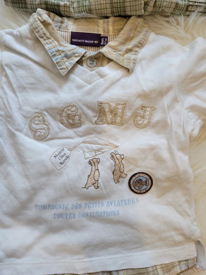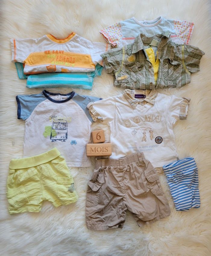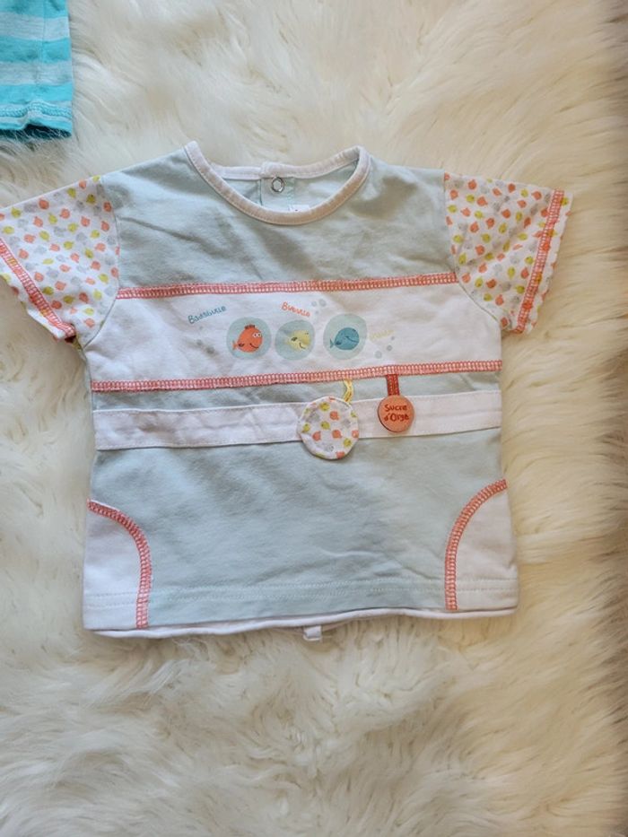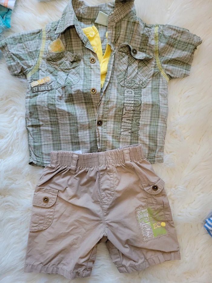 Un ensemble sucre d orge short vert anis et tee shirt tchou tchou, Un ensemble tee shirt effet chemise sergent major un short. Le short beige peu aussi se combiner à la chemise,mais elle a un défaut donc offerte. Un short rayé dpam, Un tee shirt turquoise rayé tuctuc, Un tee shirt orange tissaia Et un tee shirt sucre d orge.
