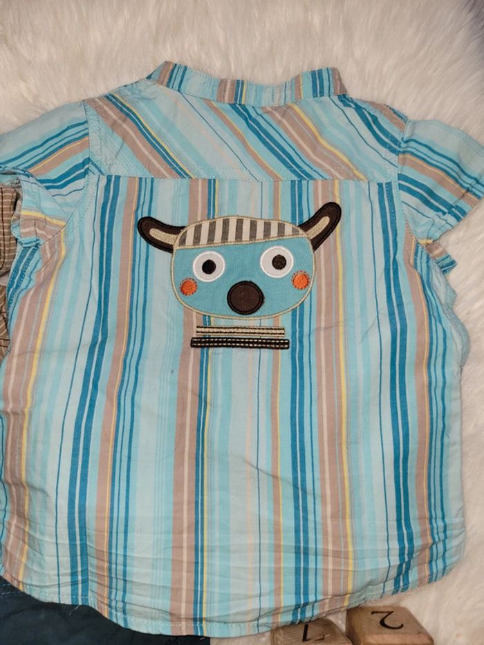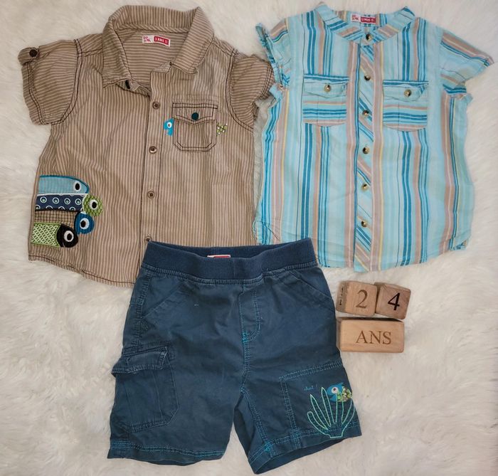 Une chemise rayé 24mois, Une chemise beige petit 36mois, Et un short