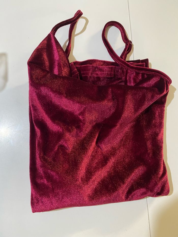 Robe à bretelles bordeaux velours avec fente sur côté taille S - photo numéro 2