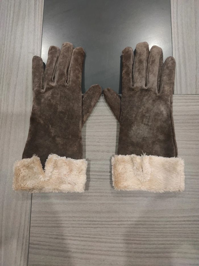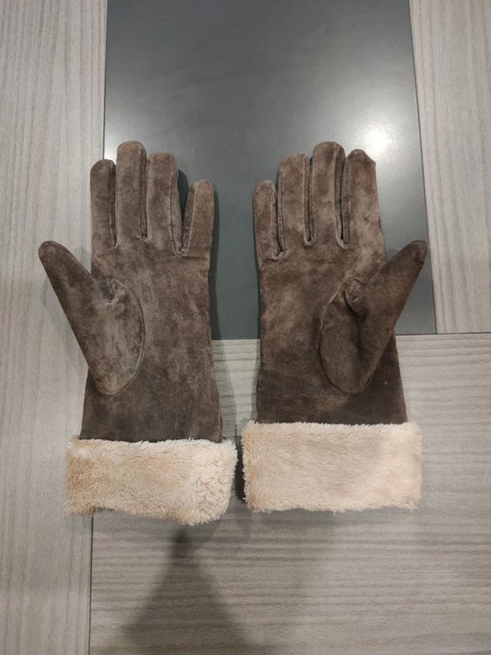 Paire de gants en croûte de cuir chauds portés une seule fois parfait état . Taille 2