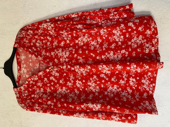Chemisier ou blouse rouge à fleurs - photo numéro 1