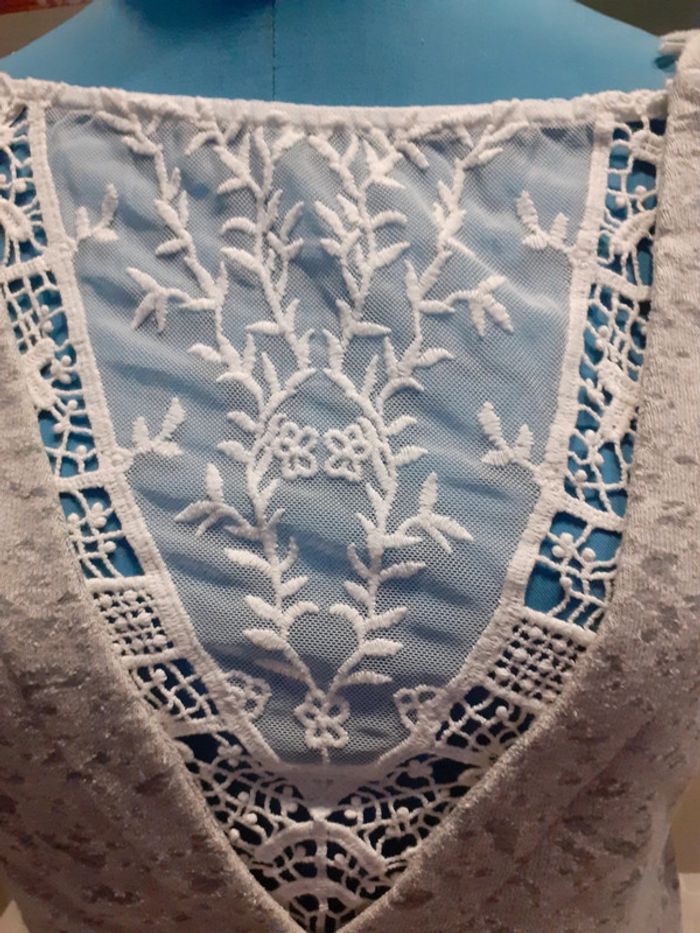 T shirt gris avec décolleté en dentelle Taille M 54% coton et 46 % polyester Envoi uniquement via Mondial Relay